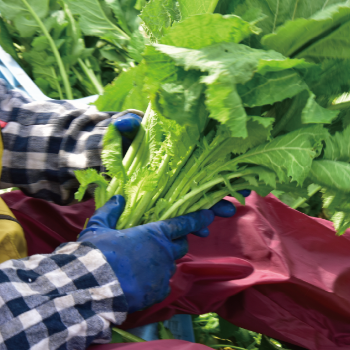 菊池食品のきざみ高菜は自社農園で土づくりから、手間ひまかけて育てた高菜を手折で収穫して漬けています。その高菜の味を存分にいかし、素材の味を存分に味わっていただける製品づくりにつとめております。